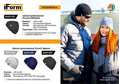 Сообщаем, что на наш склад поступили и уже доступны к заказу на сайте новинки – шапки iForm Original и iForm Эдванс: Шап 539, Шап 540, Шап 543, Шап 545.