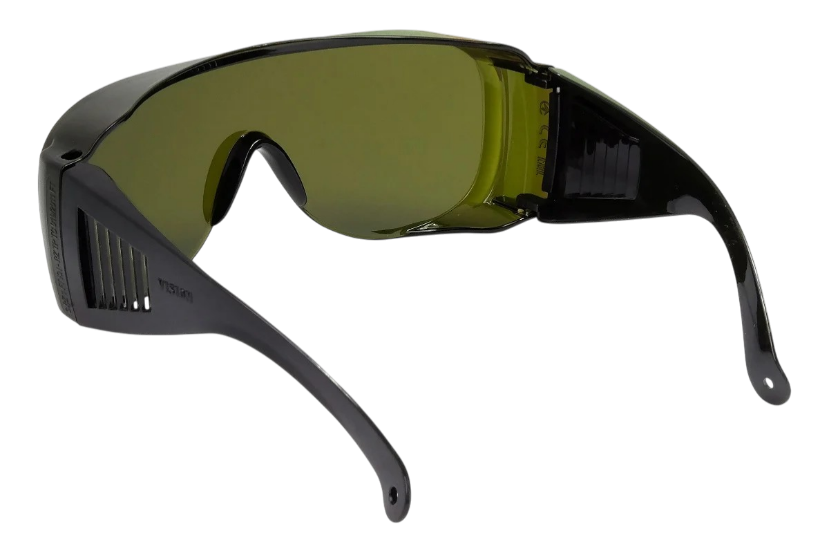 Широкий заушник для повышенной боковой защиты, увеличенная защита сверху и с боков, регулируемый угол наклона защитного стекла, возможность ношения с корригирующими очками.