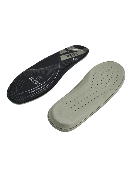Вкладные стельки VERT обладают амортизирующими свойствами за счёт комбинации слоёв из ЭВА и пенополиуретана. Они гигиеничные, антибактериальные и не теряют своих свойств при длительной носке. Форма стельки повторяет анатомию стопы и снижает нагрузку на суставы при движении.