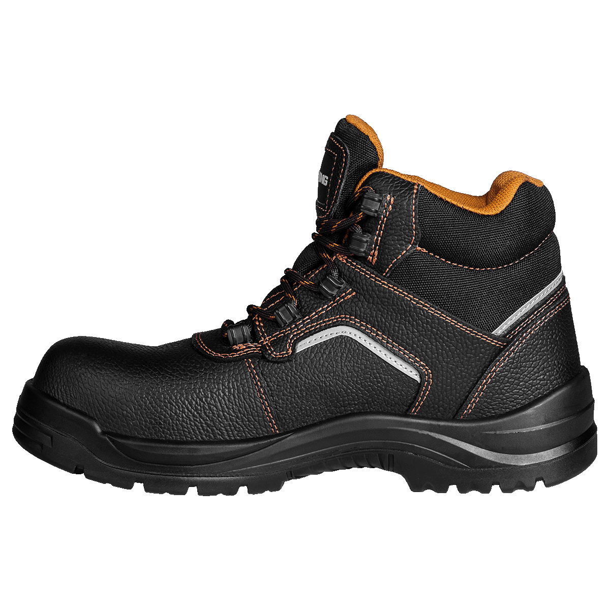 -Верх изготовлен из натуральной кожи, что обеспечивает надежную защиту, комфорт и долговечность в сложных условиях труда.
