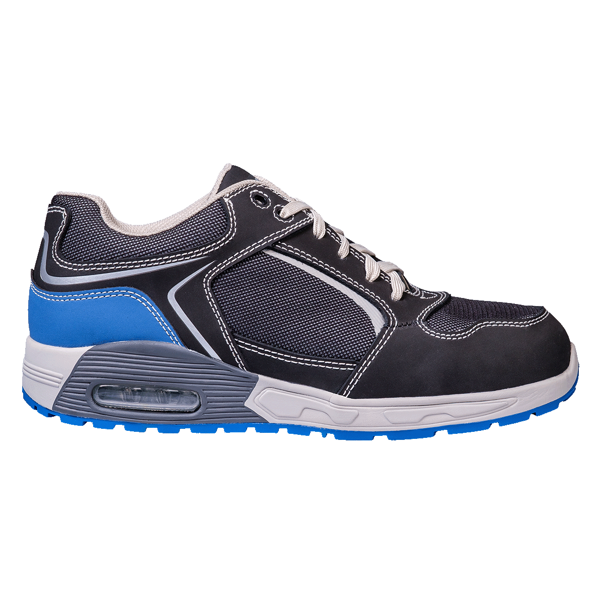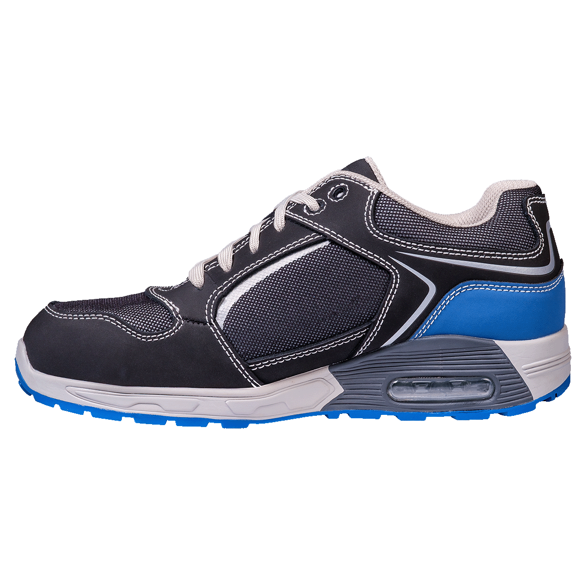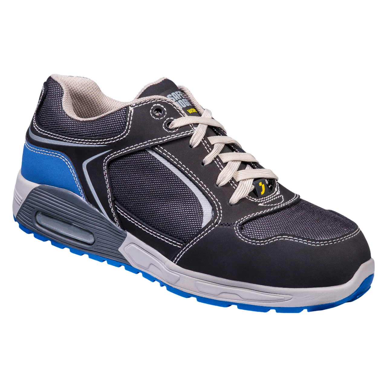 Особенности: Светоотражающие элементы, нескользящая подошва, латексная стелька с эффектом "подушки". ТПУ задник (синего цвета) , который значительно продливает срок эксплуатации. Абсорбция удара в области пятки при ходьбе с элементом AIR UNIT. Подошва антиэлектростатическая.