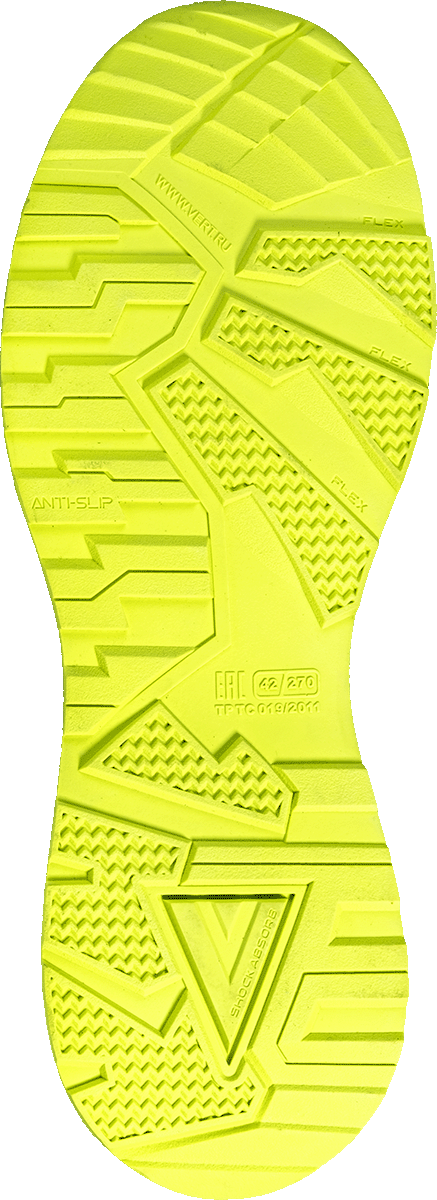 -Подошва с продуманным рисунком протектора обеспечивает наилучшую защиту от скольжения на различных типах поверхностей, гарантируя уверенность и безопасность в каждой рабочей ситуации.