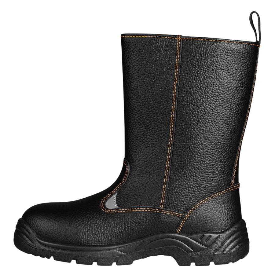 -Верх изготовлен из натуральной юфтевой кожи, что обеспечивает надежную защиту, комфорт и долговечность в сложных условиях труда.