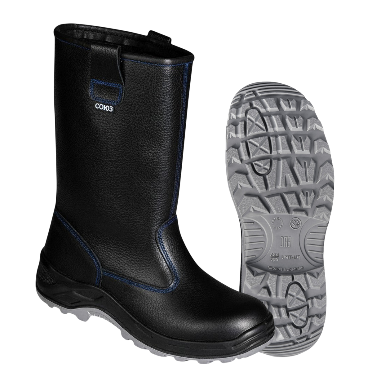 -Верх изготовлен из натуральной кожи, что обеспечивает надежную защиту, комфорт и долговечность в сложных условиях труда.