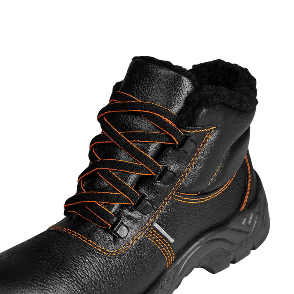 -Верх изготовлен из натуральной юфтевой кожи (союзка и берец), а мягкий кант выполнен из искусственной кожи, что обеспечивает надежную защиту, комфорт и долговечность в сложных условиях труда.