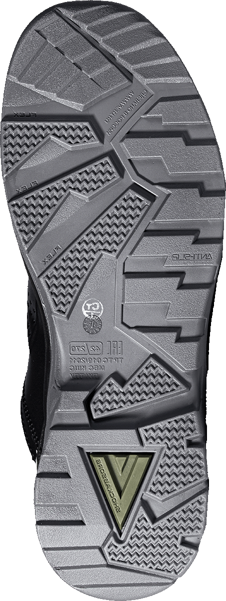 -Подошва с глубоким протектором и продуманным дизайном обеспечивает наилучшую защиту от скольжения на различных типах поверхностей, гарантируя уверенность и безопасность в каждой рабочей ситуации.