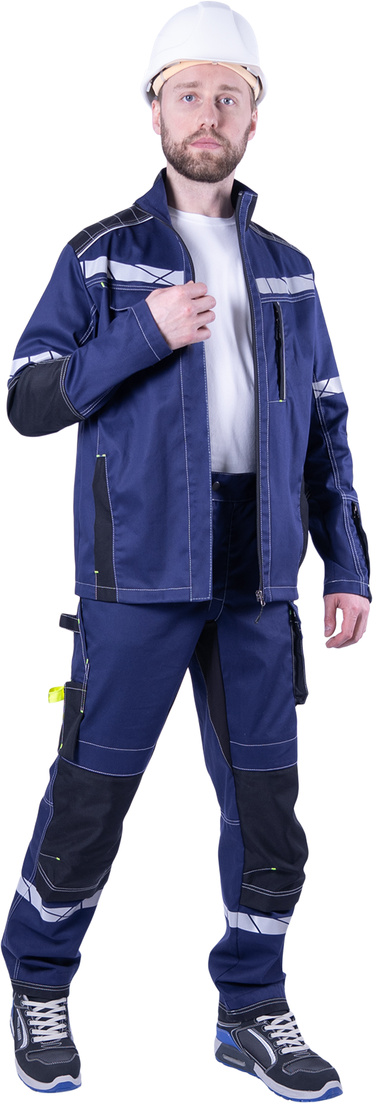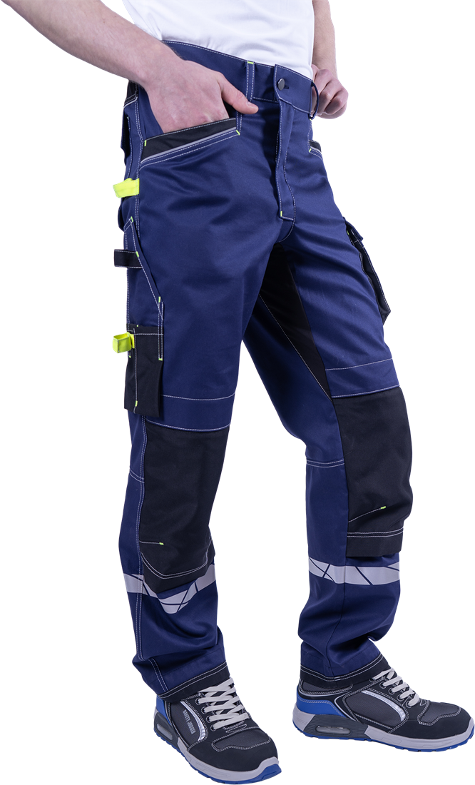 • на правой половинке брюк по боковому шву располагается карман под инструменты, низ кармана усилен износостойкой тканью (100% полиамид 6.6)