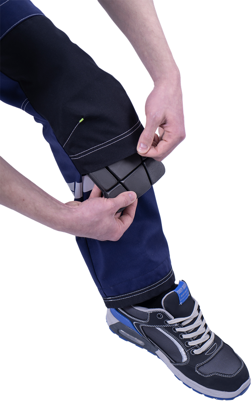 • под наколенниками охватывающая термоклеевая световозвращающая полоса шириной 30 мм