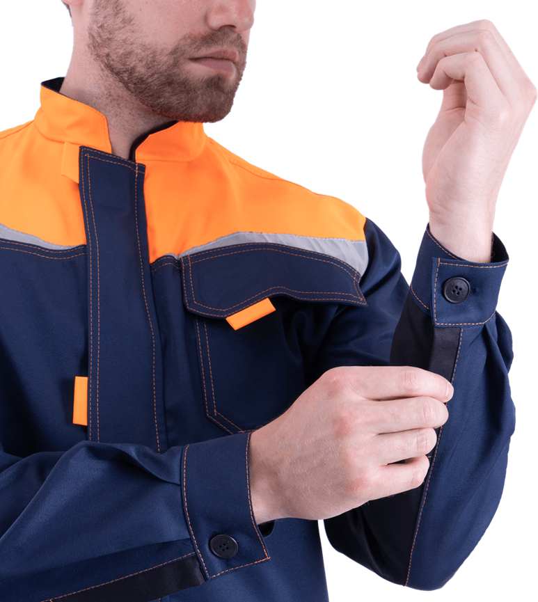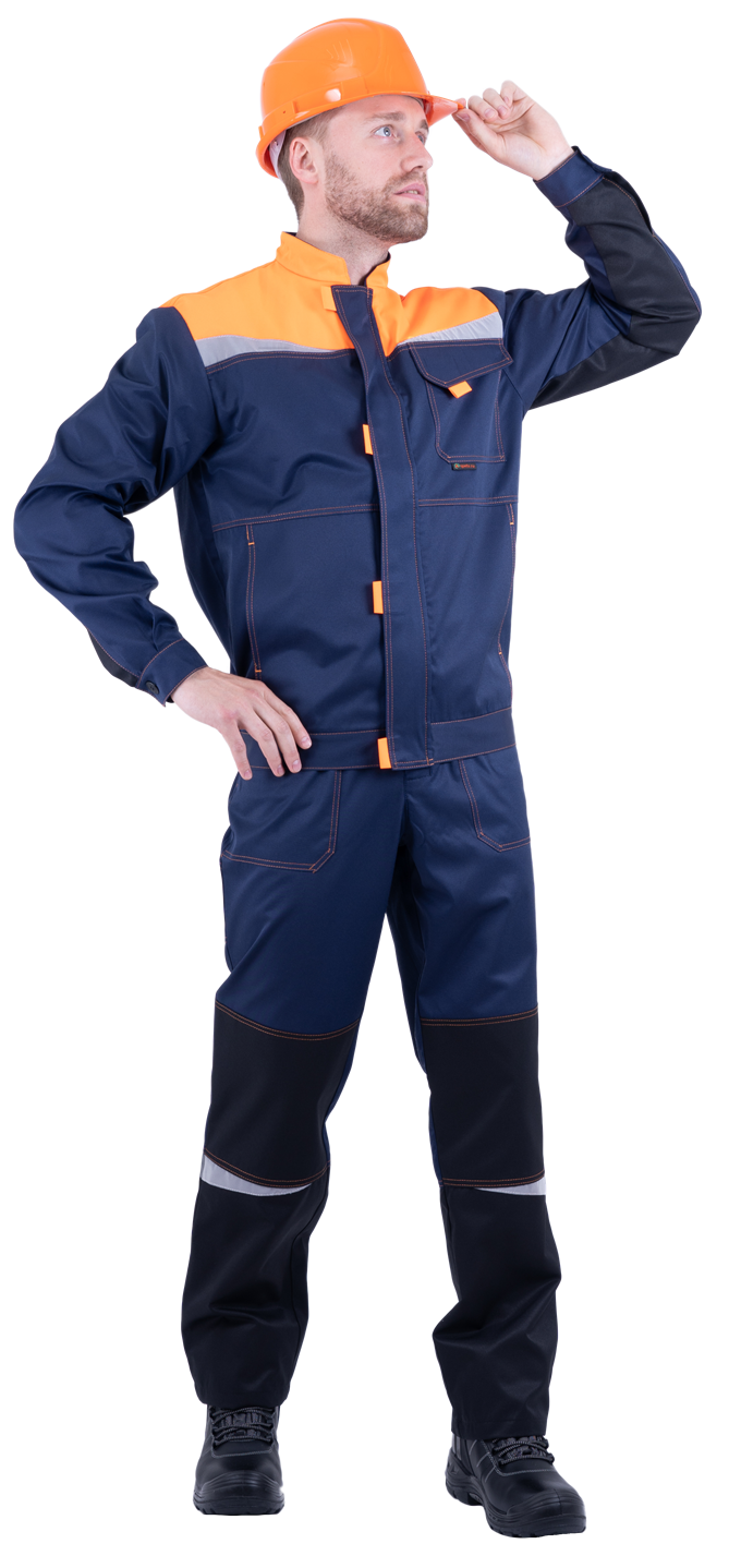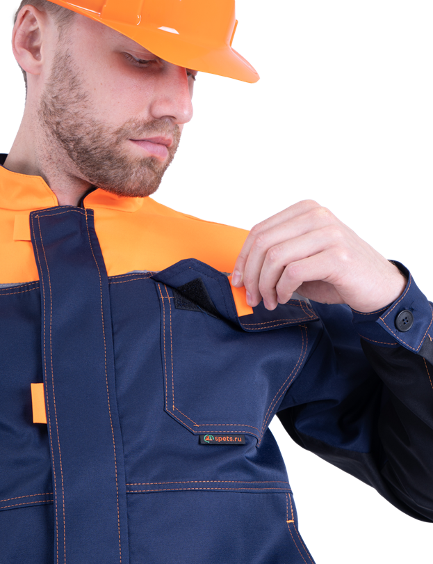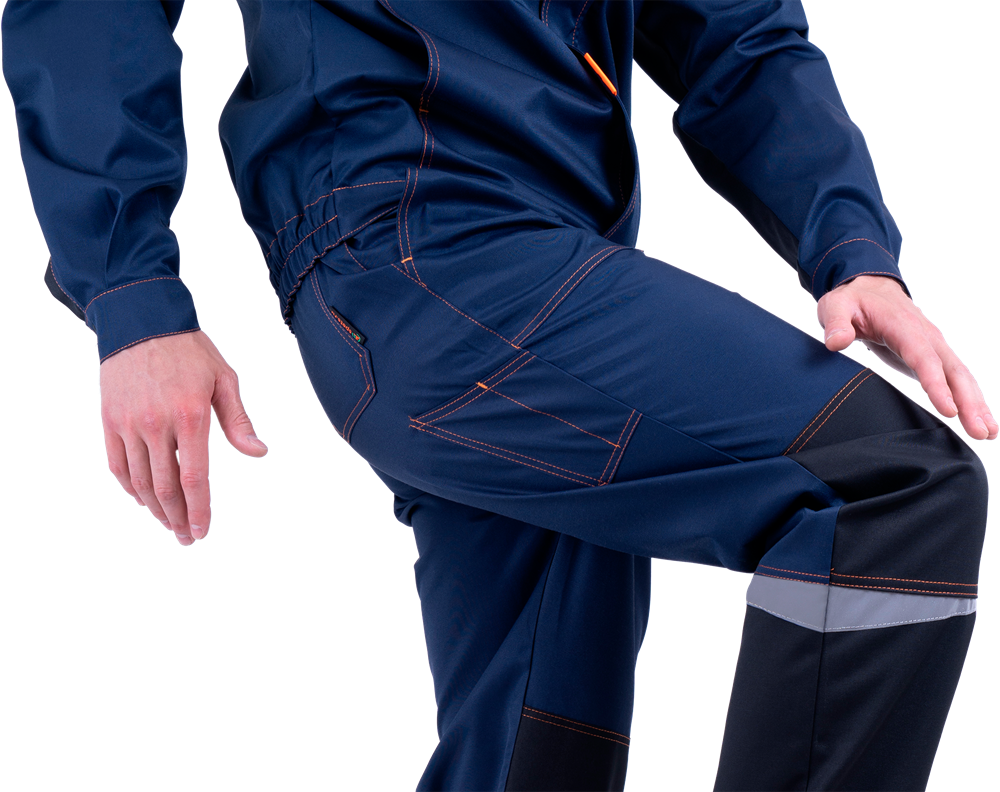 Костюм состоит из куртки и полукомбинезона. В костюме используются детали