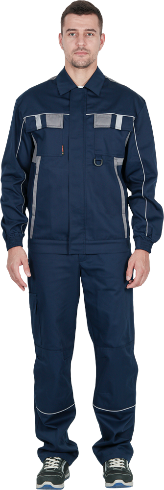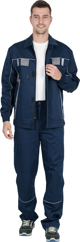 Костюм состоит из куртки и брюк.