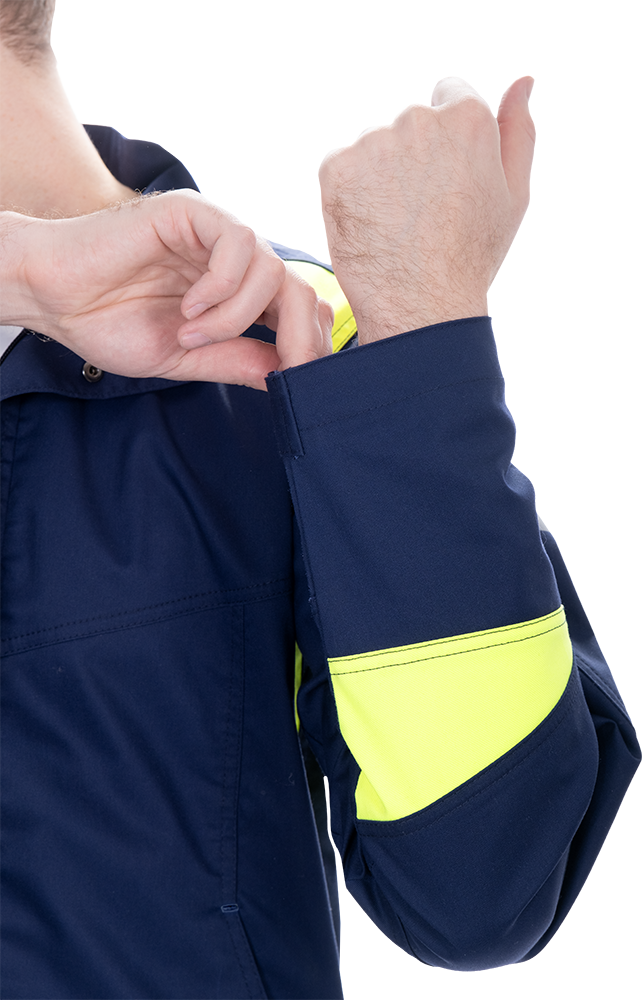 Изделие выполнено из инновационной ткани «Индустриаль Флекс» с добавлением эластолефина, которая обеспечивает высокую износостойкость и свободу движений.