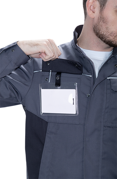 • в правом нагрудном кармане под клапаном петля на кнопке для крепления бейджа