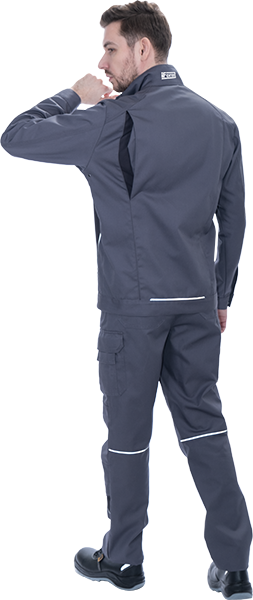 • световозвращающая двухсторонняя лента в виде канта по кокеткам полочек, по наклонным боковым вставкам куртки, по центральной части спинки вдоль пояса обеспечат видимость работника при плохом освещении и в темное время суток