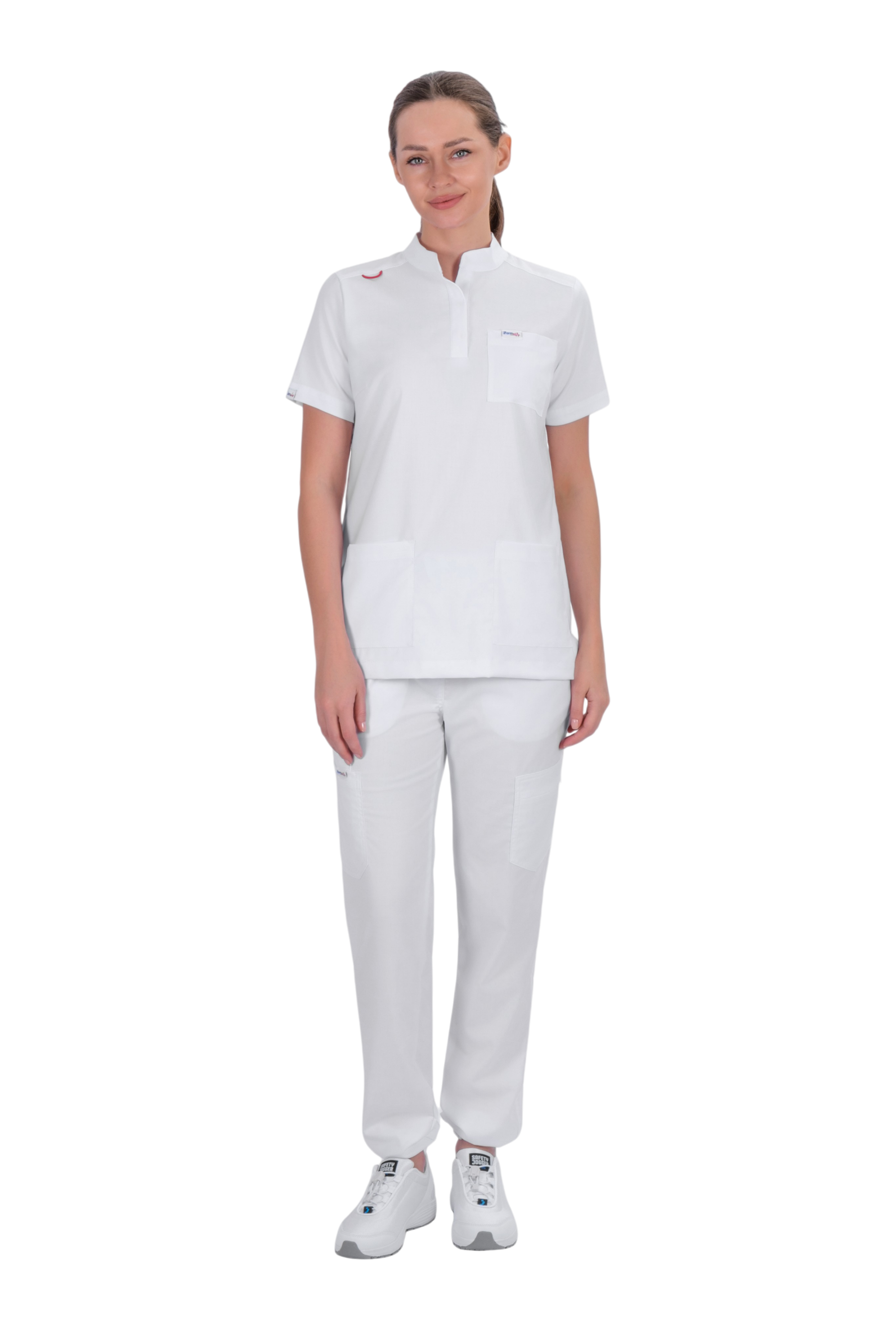 На уровне боковых швов расположены 3 накладных кармана: левый -накладной карман фигурной формы вход в карман с застежкой-молния, правый -большой накладной карман фигурной формы и малый накладной карман расположен под правым большим карманом, вход в карман разделенный на две секции.