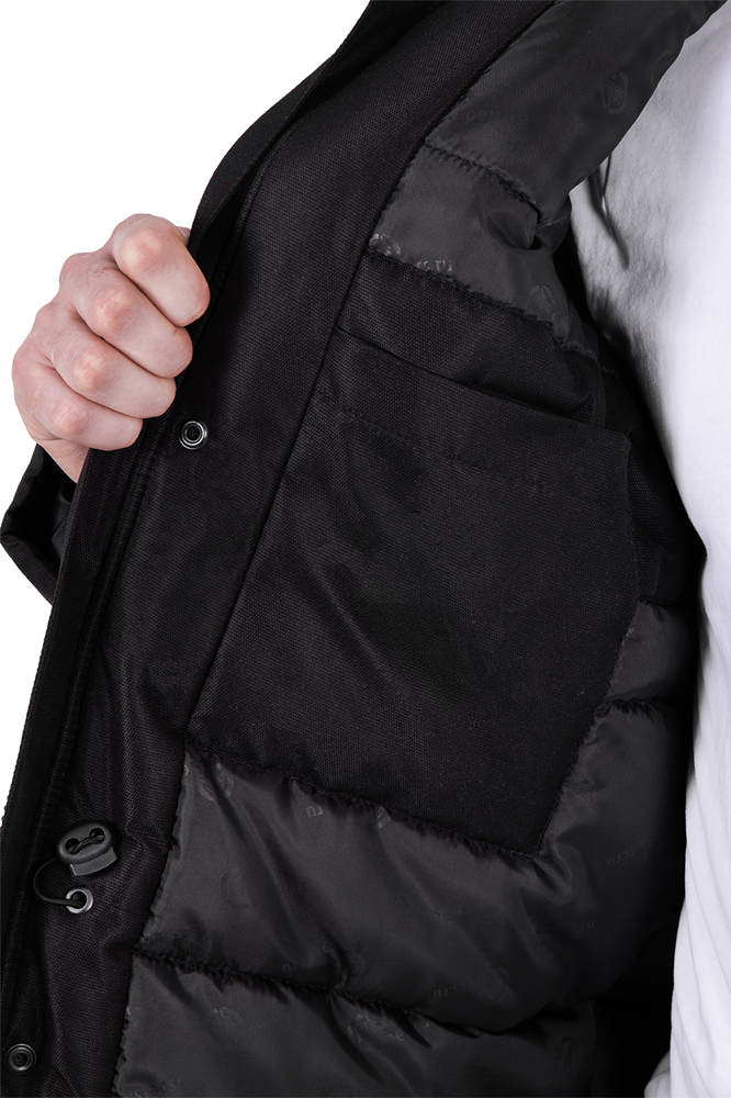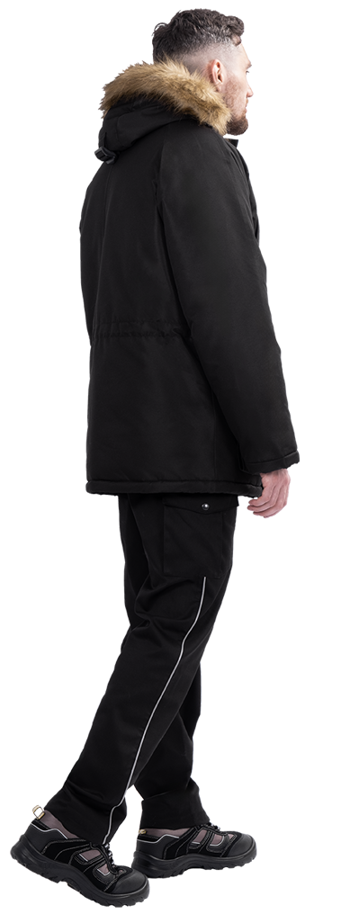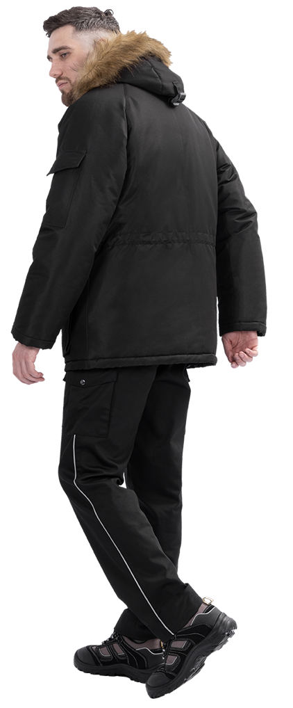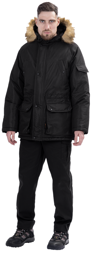 • капюшон с регулировкой объёма и съёмной меховой опушкой