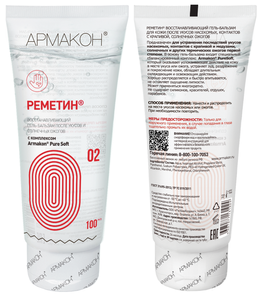 Комплекс Armakon® PureSoft оказывает успокаивающее действие на кожу в месте укуса или ожога, устраняет зуд, раздражение и покраснение кожи.